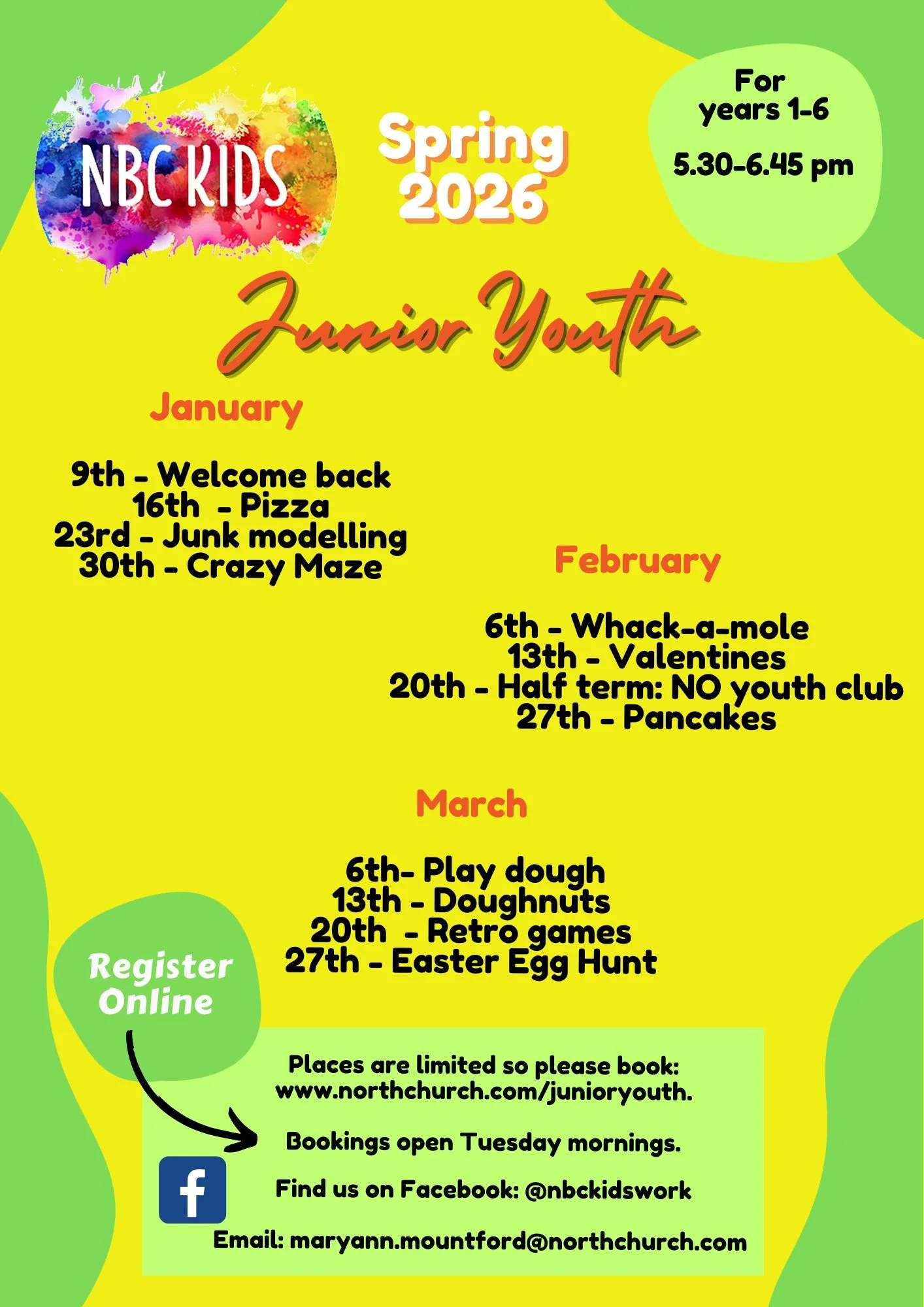 our Children and Families Worker Mary-Ann via email maryann.mountford@northchurch.com